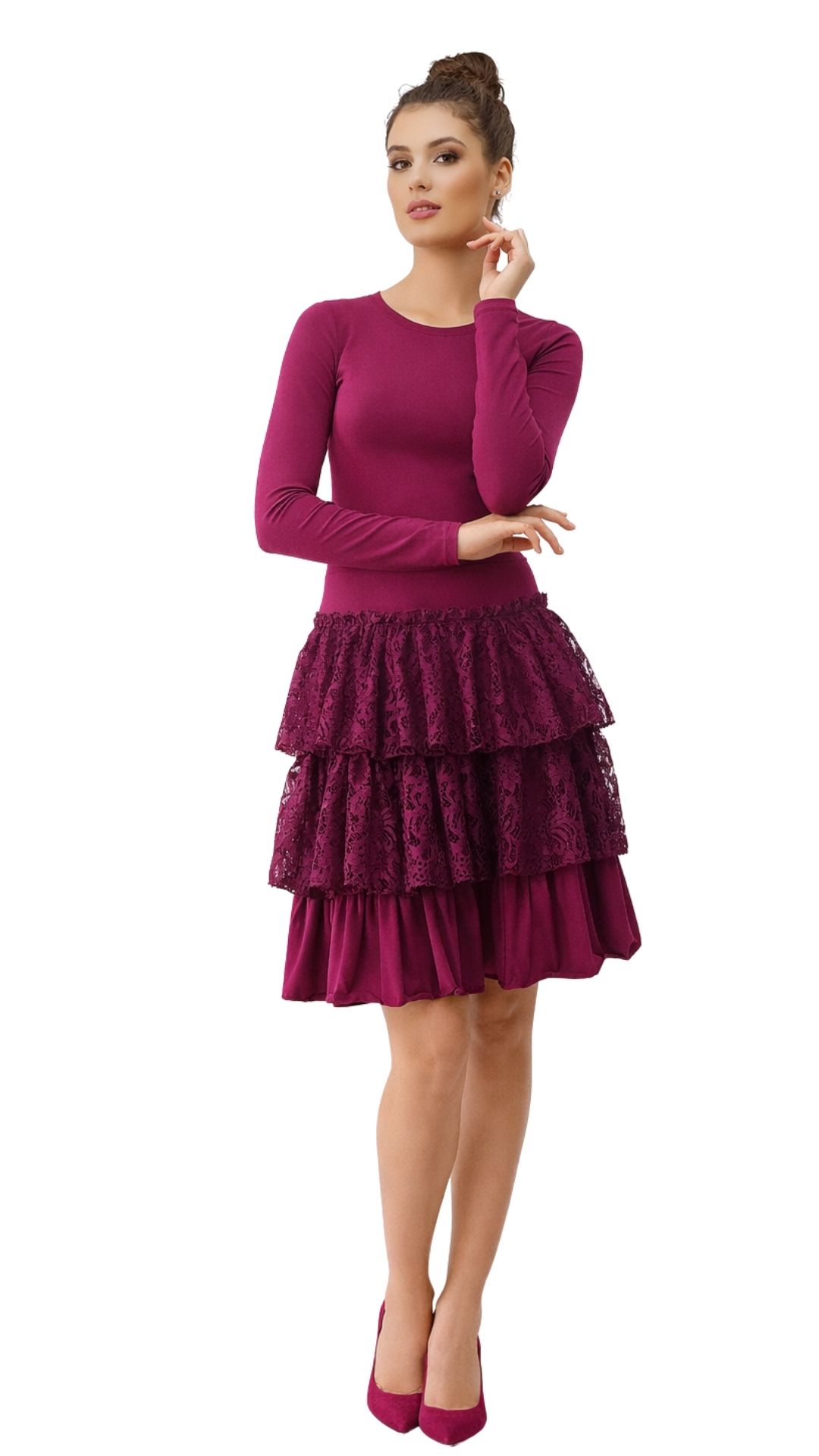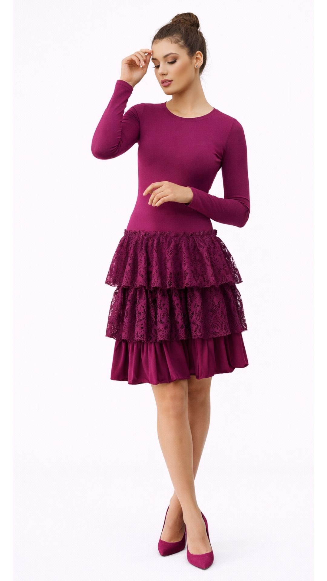 Ciklama boja ističe ten i čini ovaj model idealnim izborom za svečane prilike, večere, proslave ili elegantne večernje izlaske. Haljina je udobna, ali vizualno vrlo efektna – savršena za žene koje žele biti primijećene.
