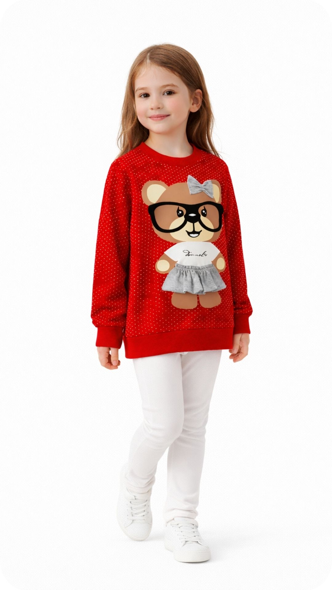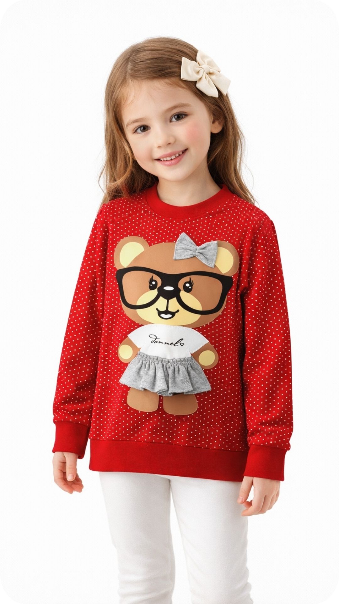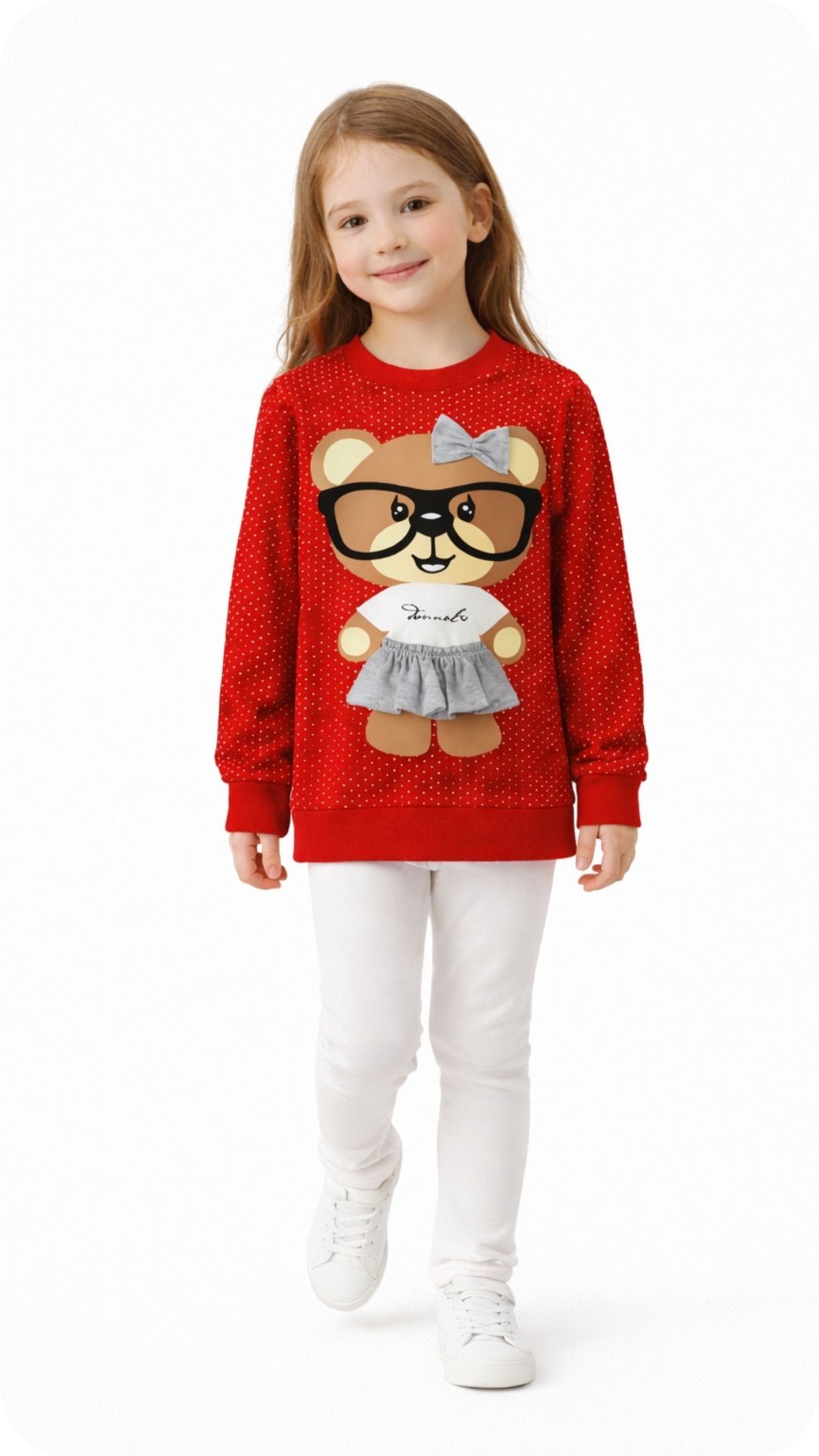 Model ima duge rukave, a krasi je simpatičan motiv mede, koji će se svidjeti djevojčicama svih uzrasta. Idealna je za vrtić, školu ili slobodno vrijeme te se lako kombinira s tajicama ili trapericama.
