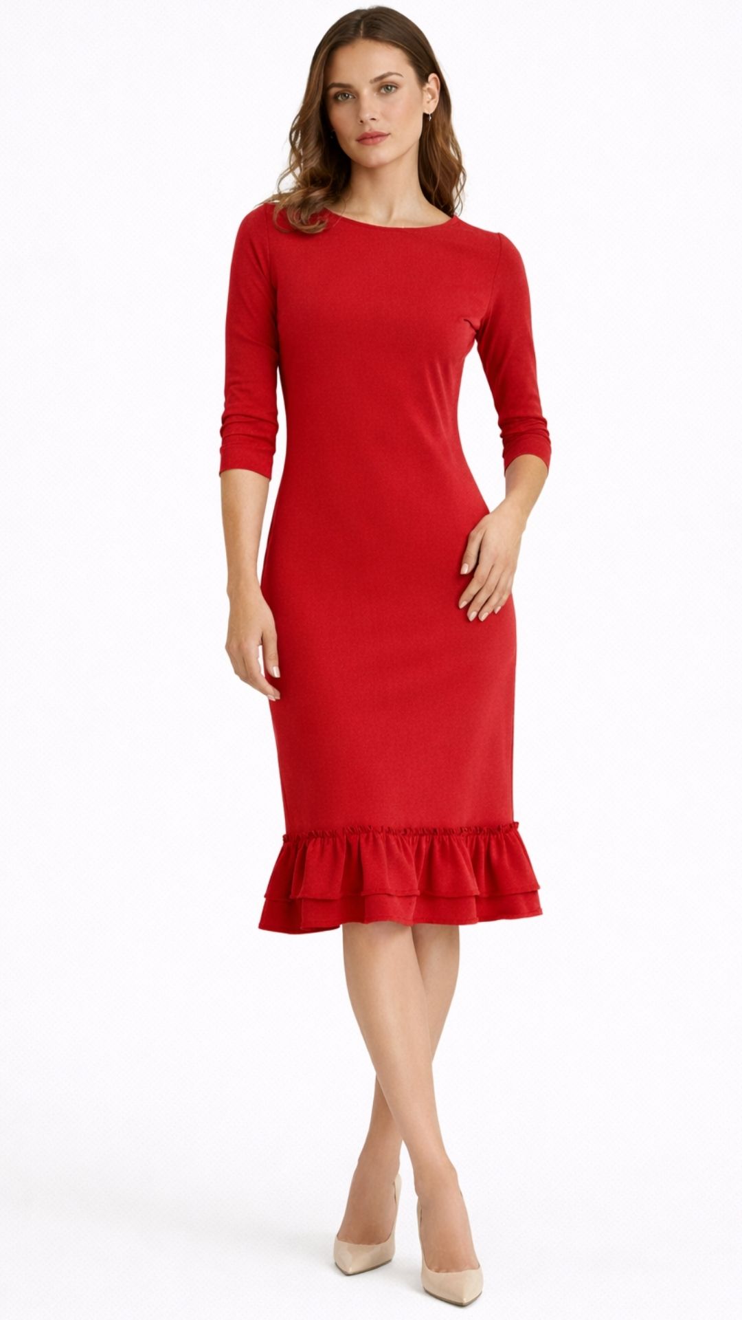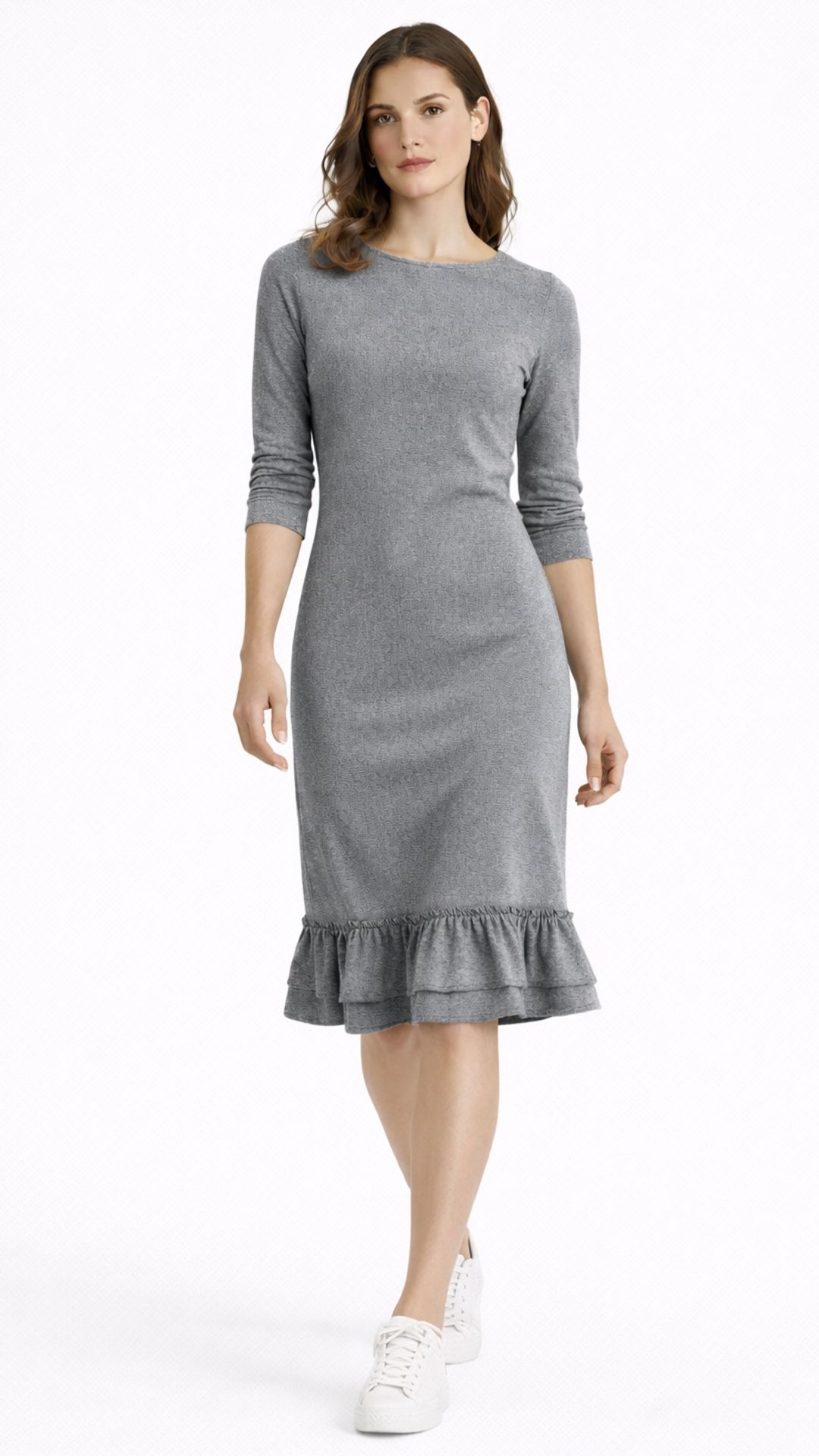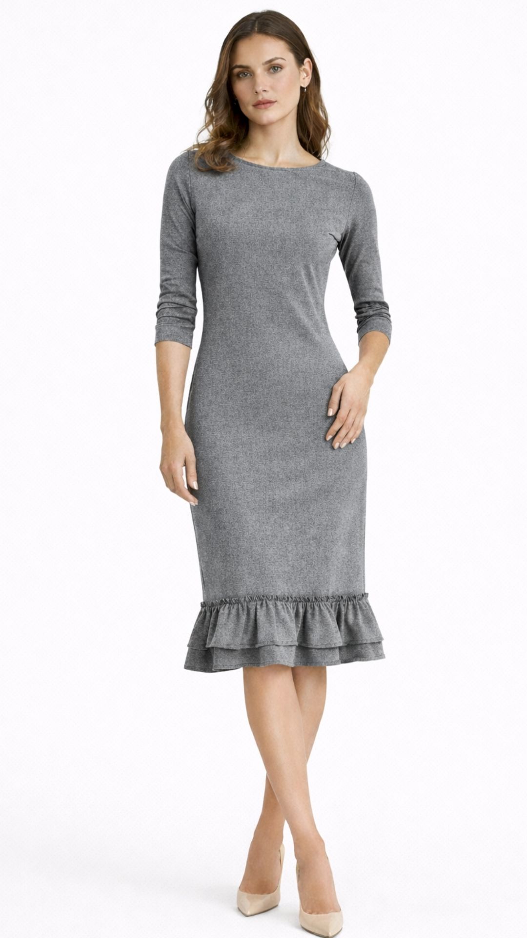 Kroj nježno prati liniju tijela, dok volan na donjem dijelu haljine dodaje dozu razigranosti i profinjenosti. Zahvaljujući jednostavnom dizajnu i pažljivo biranim bojama, Iskra se lako prilagođava različitim stilovima – od dnevnih kombinacija uz tenisice do elegantnijih izdanja uz cipele na petu.