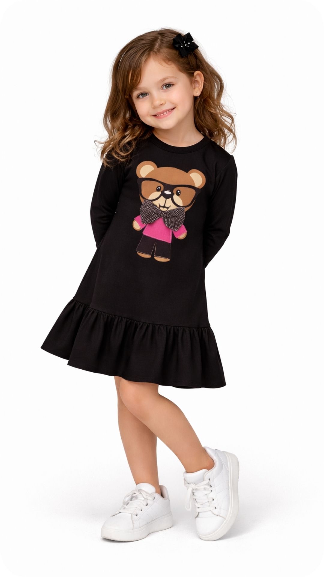 Pamučna haljina DONNEL Lotta s printom prepoznatljivog DONNEL medvjedića, na stranici donnel stranici potražite i isti model za mamu